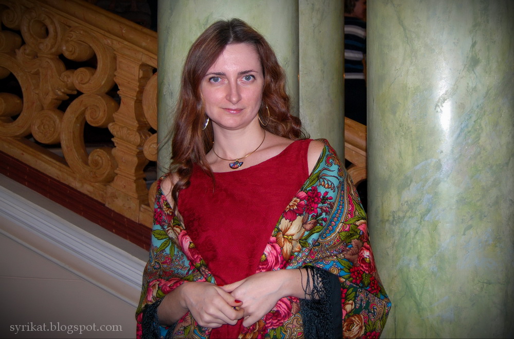 Наталье красиво в бирюзовой Счастливице, и кофточка хорошо гармонирует. Милое, приятное лицо, шаль очень идёт!