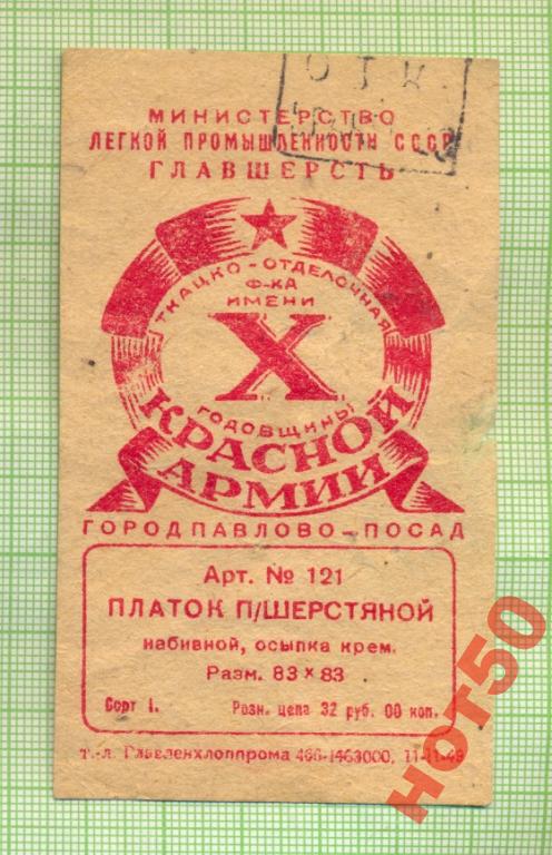 Еще этикеточка фабрики им. X годовщины Красной Армии. Вопрос по ходу? Этикетку с платком или без платка? Пока выложу с платочком, а там - как скажете.