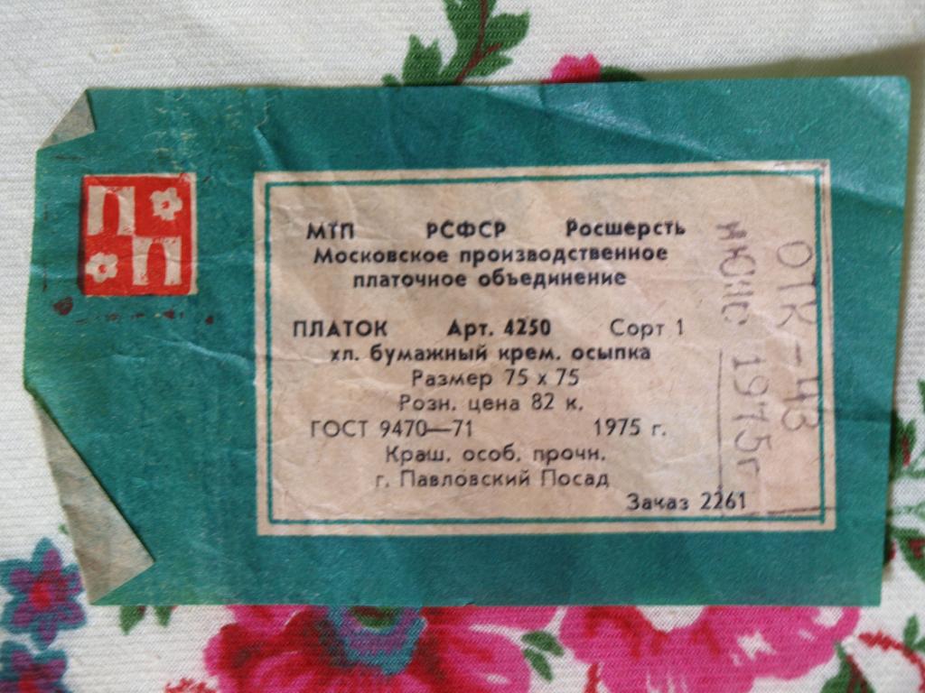 По хронологии у нас идет Московское производственное платочное объединение. Несколько этикеток.