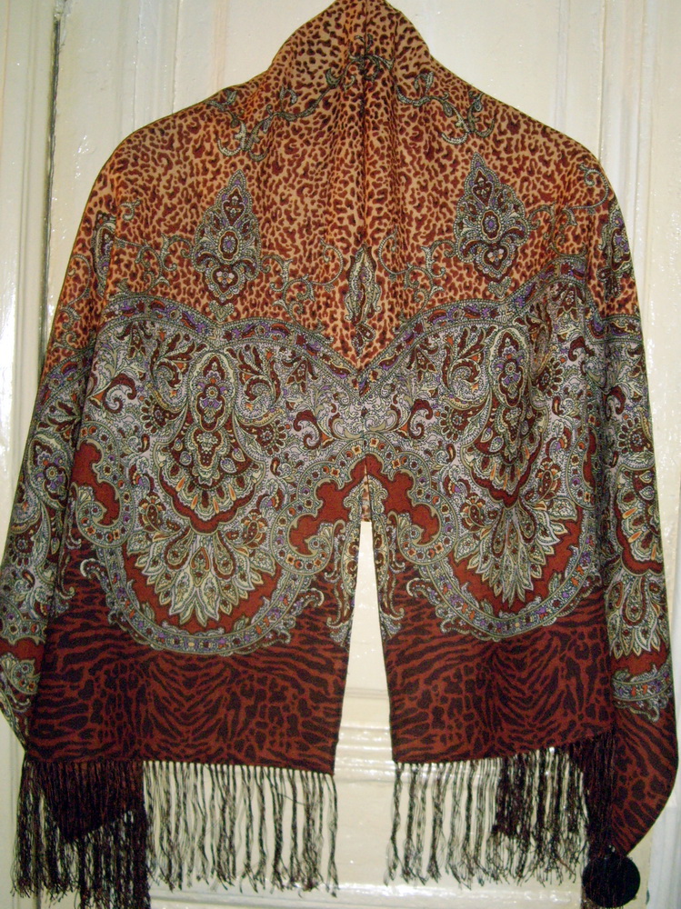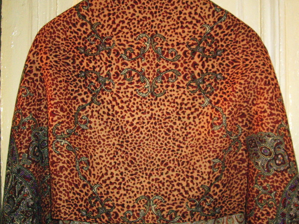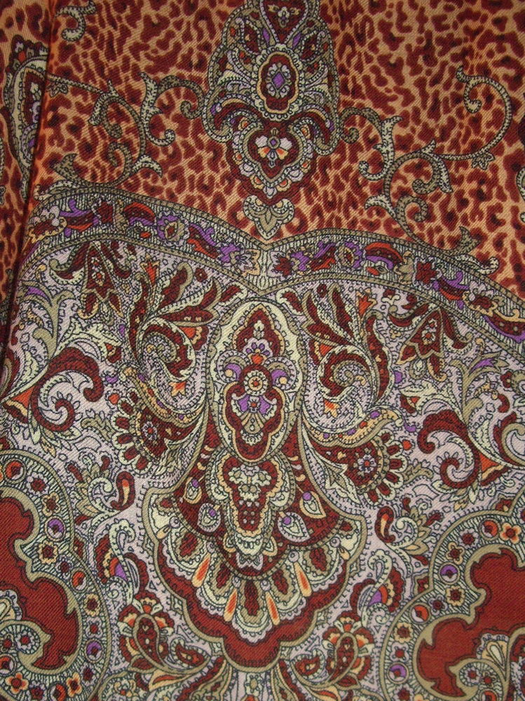 Более того, многие платки довольно часто складываю по прямой, получая подобие двойного палантина. В палантинах мне очень симпатично и леопардовый рисунок, а вот в шалях такое заполнение центра меня очень напрягает.