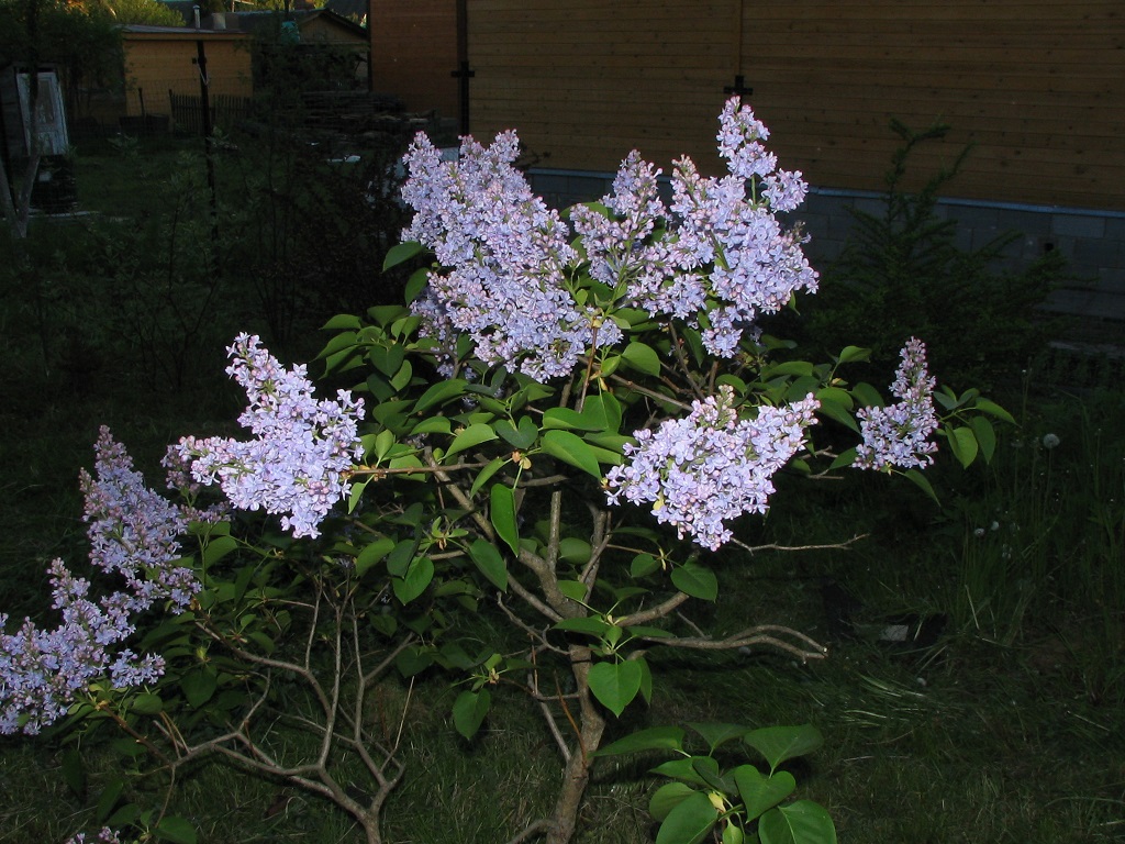 А этой сиренью я активно занялась в 2009 году, она растет возле крыльца, бабушка моя за сиренью не привыкла ухаживать (не яблоня же). Считала что это как сорняк, сама как-нибудь вырастет. После ее смерти на меня весь участок свалился, ну и решила я поэкспериментировать, вдруг расти начнет, а то не выше 1 м 50 см. Стала сирень подкармливать, обрезать и она в рост пошла. Фотография 2009 года, днем и вечером. Цвет вполне обычный для сирени.