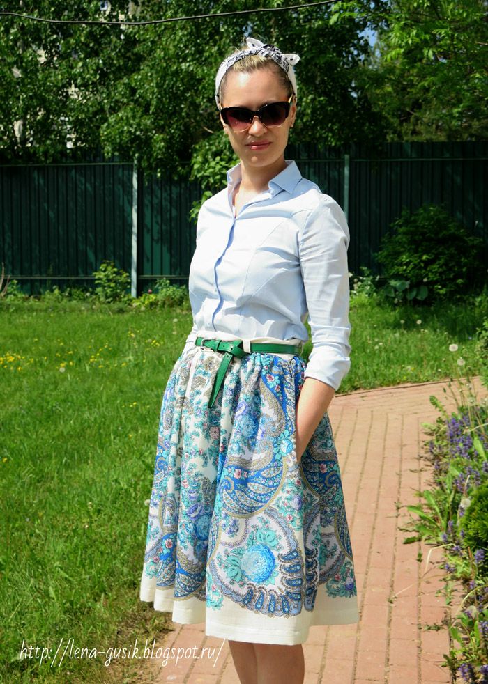 mrrmumur писал(а):Лена_Леночка, кокетку сделать из платка, а остальное - однотонное. Или карманчик из платка. Или окаемье у горла. Или кайму внизу. Вариантов много.