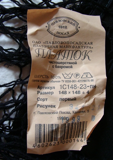 Natanata, на самых новых бордовых этикетках на уплотненных шалях 148см нарисована роза в ромбе - товарный знак ППМ, до этого вместо этого ромбика ставился логотип мануфактуры с датой 1795 внутри. Оба эти варианта сейчас есть в продаже.