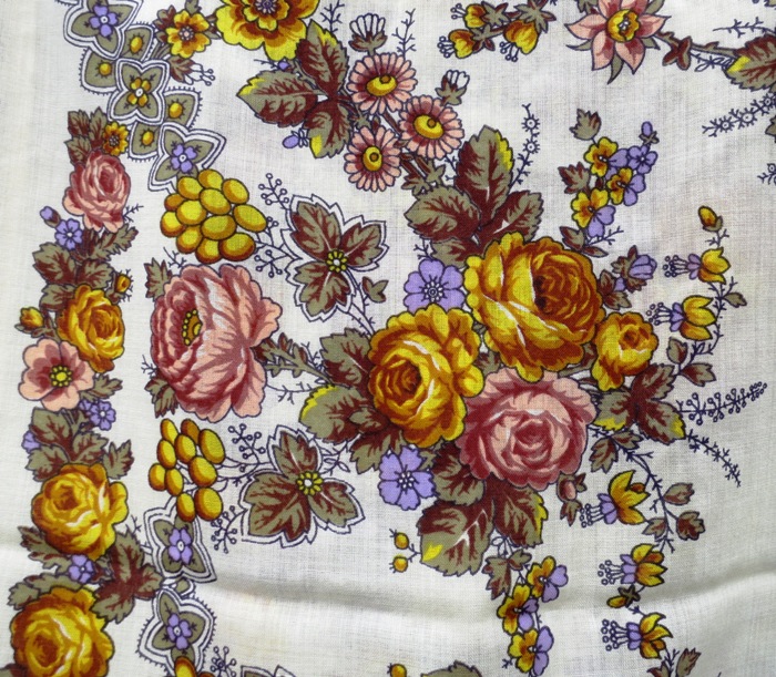 Как в основном и бывает с шерстяным винтажом здесь у нас, сохранность хотелось бы получше. А жаль, платок просто чудесный. Мне почти все рисунки Ольшевской нравятся, а этот в особенности - очаровательные цветы.