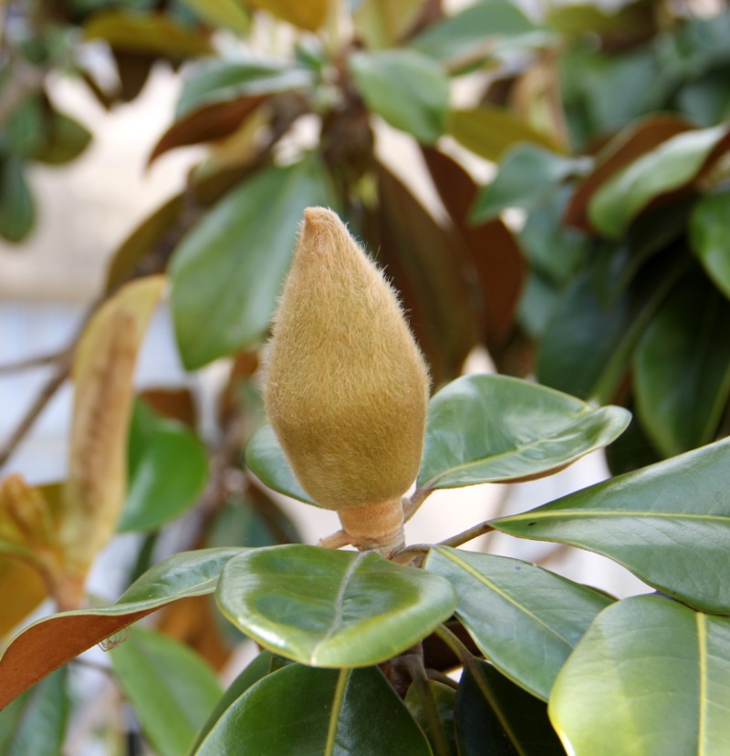 Верне, почка могнолии. В такой мохнатой оболочке цветок зимует. Видела в Ялте.