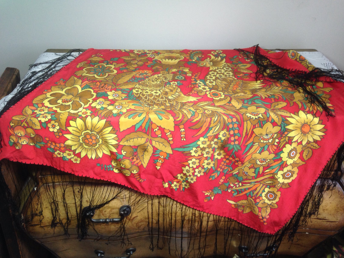 Недостаток у городецких платков только один: их довольно сложно получить. Я предпочитаю делать редкие вылазки в Городец, чтобы покупать на фабрике без переплат, ну и обязательно всегда ищу их небольшой, но сияющий красотой стендик на выставках вроде "Ладьи" (кстати, к моему позору, о том что такие замечательные выставки проводятся у нас в Москве я тоже узнала от сотрудниц фабрики пару лет назад, до сих пор не понимаю как я раньше не замечала рекламы этих выставок!). Собственно из-за труднодоступности коллекция у меня пока небольшая, а недавно умершая карта памяти предательски погубила большинство красивых фотографий этой маленькой коллекции, но кое-что, порывшись по архивам, я всё-таки нашла.