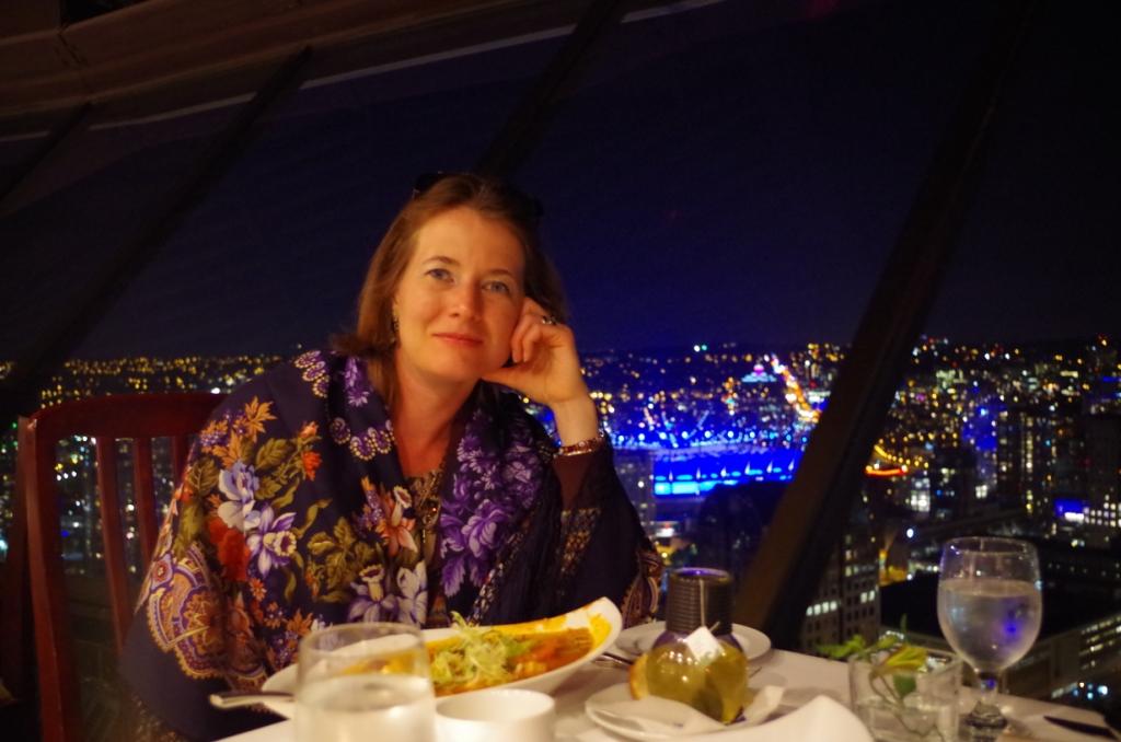 Потом был ресторан и ночной Ванкувер с высоты птичьего полета.