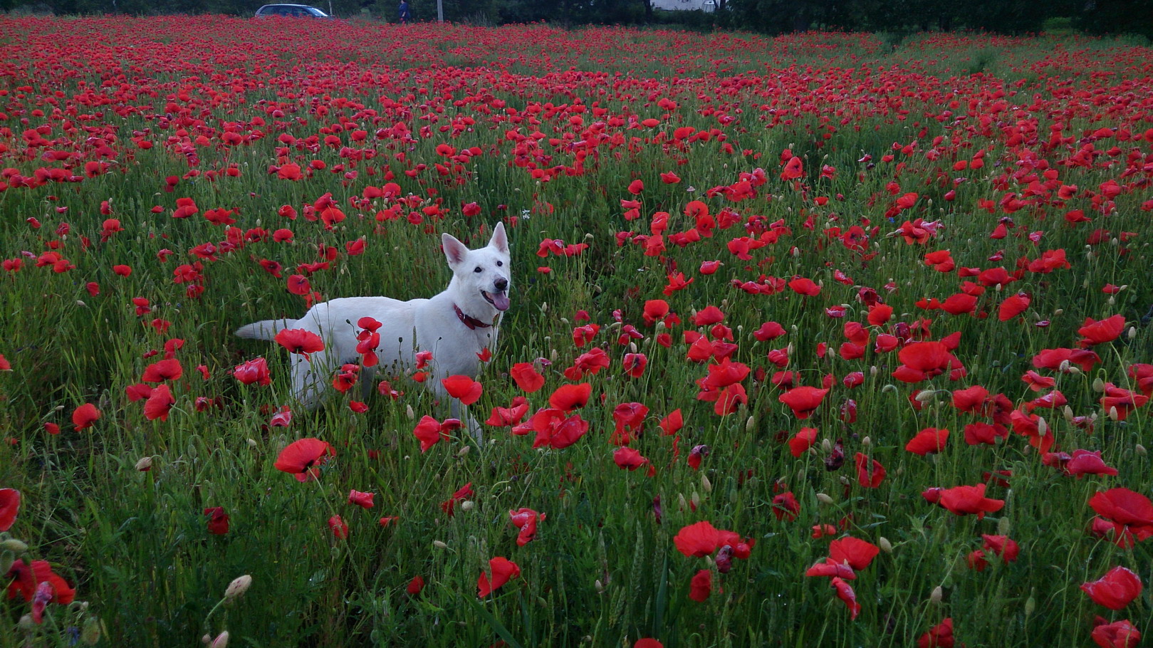 Багги и маки. Фотография прошлогодняя. Это маковое поле на полпути из Риги в Вентспилс. Каждый год цветет мак на Лиго, а в этом году еще не успел. У нас этим летом холодно. Вот только сейчас вроде лето "включили" ;)