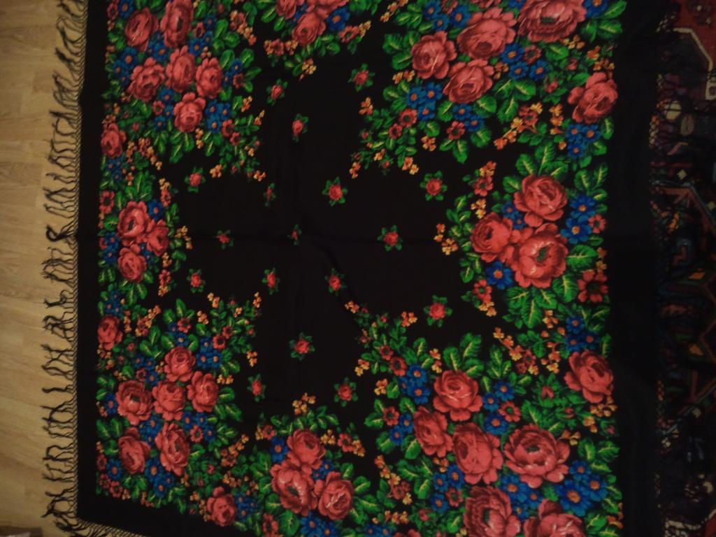 БС543 – Киев, имеются фото с этикеткой (кстати, их на форуме уже показывали, но что-то не найду). Смущает, что этикетка - «имя существительное», то бишь к платку не приклеена и не пришита. Но — совсем чуть-чуть это меня смущает, поскольку по стилю — самый натуральный Киев и есть.