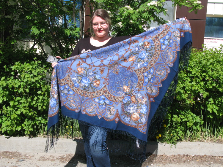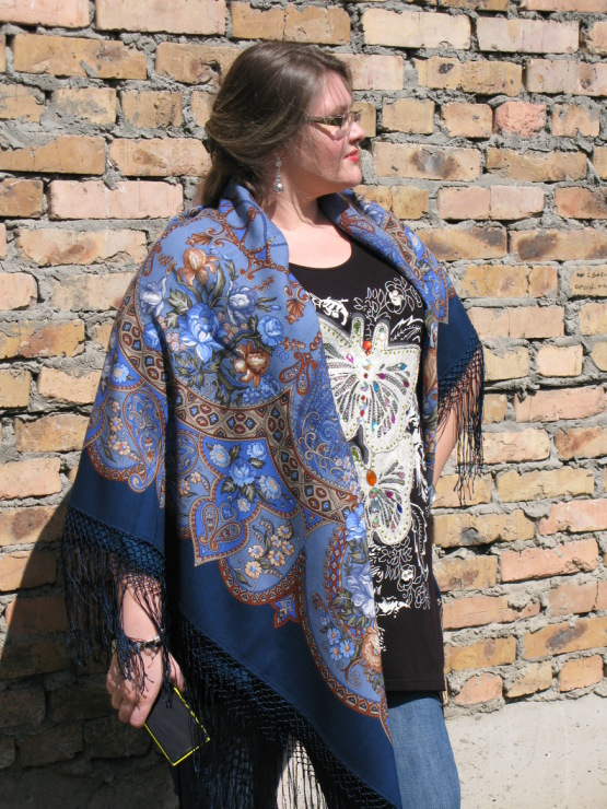 Демонстрируем ношение платков и шалей.