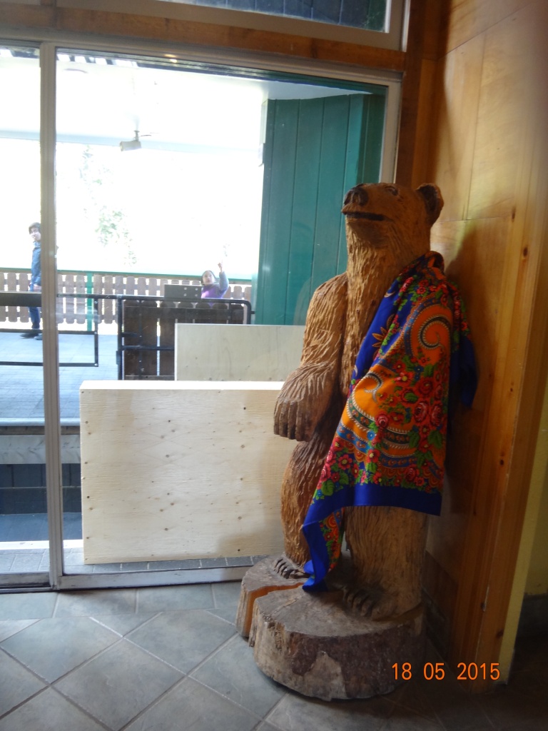 На горе,запарковав машинку на единственном найденном свободном месте (оказавшемся прямо под фуникулёром,напротив таблички *машины не ставить,падают камни*), в ожидании фуникулёра занялась оплаточиванием ( или обРУСИванием ) местных медведей, к великому удовольствию малышни.Поднявшись наверх, покинула кабину под напутственные слова оператора о том, что выходить за ограждение официально нельзя, но если очень хочется - то можно