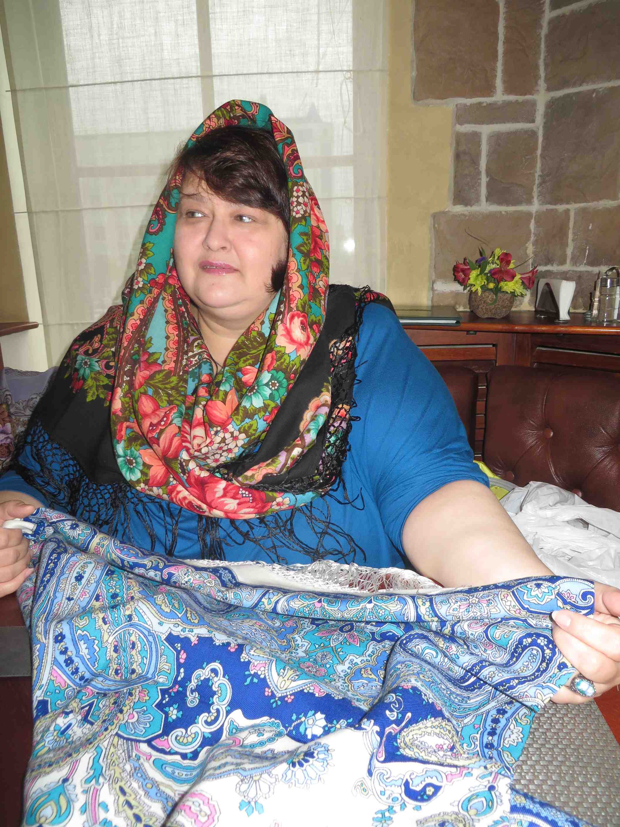 Вот тут мы с Машей демонстрируем Розы и пионы 11, но главное в этом показе - бахрома! Где тон в тон - это дело рук Елены (на мне), а которая светлее поля шали - выбор мануфактуры (на Маше).