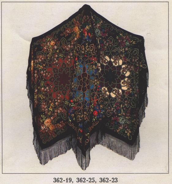Попробую обобщить информацию о прекрасной шали "Цыганка Аза" авторства Екатерины Регуновой. Шаль есть в каталогах, начиная с каталога 96-97гг. Возможно, она начала печататься раньше, но я об этом не знаю