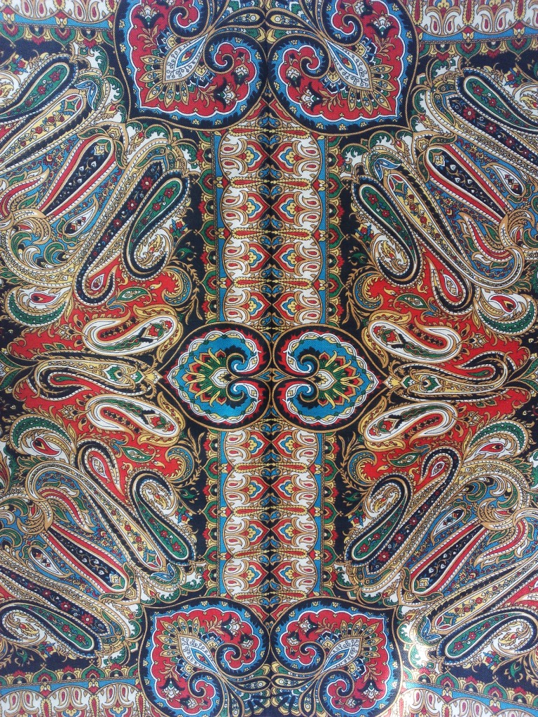 Но это, если бы платки были целыми. Из лоскута получилось вот так (прошу прощения за качество фото, но палантин видно):