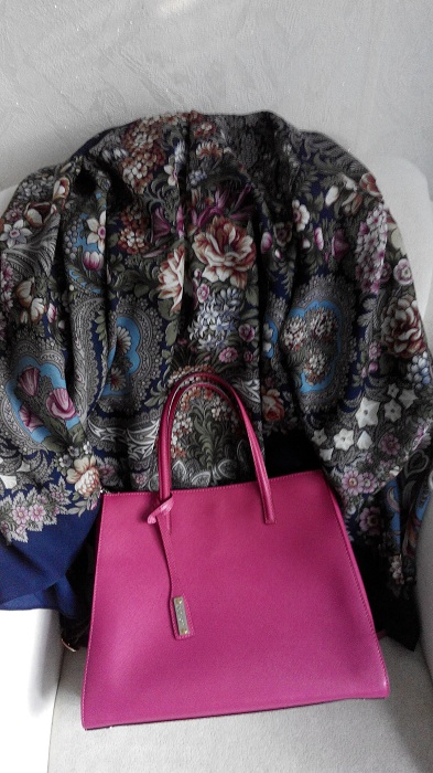 olgaballet , шали Караван у меня нет, что-то не впечатляет рисунок, совсем, а сочетание с изумрудом, да, классное получилось бы. С Княжеским и ВУ-2, предсказуемо хорошо. Вообще, несмотря на активный цвет- фуксиевый, эта сумка очень универсальная...много платков и шалей подходит.