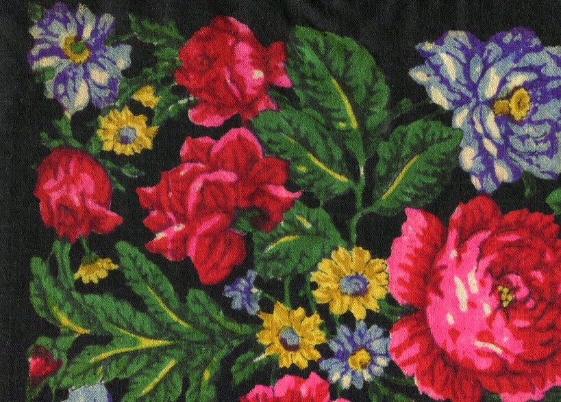 Для чёрной шали сканов изнанки не делали, так как отличается лицо от изнанки более ярким цветом. Сравнивали только лицевую сторону ручной набойки.