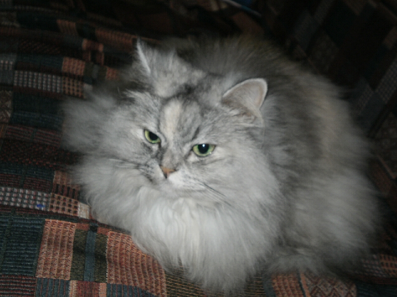 На днях судьба меня свела с замечательной кошечкой двух лет отроду. Соседку по лестнице срочно забирали в больницу. Надолго. Она недавно купила кошку (недёшево), которую её родители не хотели забирать себе (они очень пожилые). И сказали, что если за полчаса кошку никто не возьмёт, насовсем, то они её выкинут на улицу. Ира прошлась с ней по всей лестнице, но кого не было дома, у кого аллергия, у кого ещё что-то, кошку никто не взял. Наша квартира последняя. И пять собак. Все охотники. И Ира приносит кошку нам. Я не смогла отказать. представив, что это домашнее,наверное избалованное и очень трогателное существо окажется на улице и пообещала, что найду хорошие руки. Кошка очаровательная - серо-жемчужный перс с изумрудными глазами (или не перс, не знаю, как эта порода называется. Постораюсь в ближайшее время поставить фото, я надеяюсь вы мне поможете определить породу). Кошка тут же забралась ко мне на руки и с них уже не слезала. Нашла на ней огромный калтун на бедре, попыталась разобрать его собачьим калтунорезом, но плюнула и выстригла). Кошечка спокойная, все манипуляции дала с собой проделать без истерик. Я параллельно поставила на ноги всех знакомых, чтобы искали хорошие руки. В это время вся моя борзокоманда была размазана мордами по дверному стеклу и с недоумением ждала продолжения. Муж уже ушёл на работу, мне тоже надо уходить. Оставить кошку одну в квартире с моей стаей было немыслимо. Они вынесли бы дверь вместе с замком. И не одну дверь.