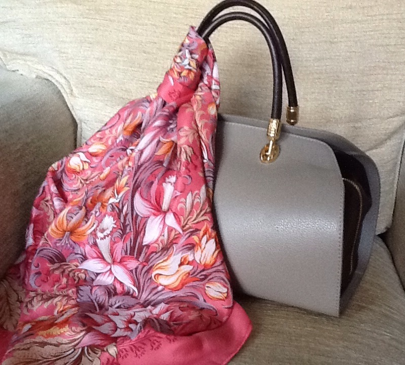 Amora - красивое сочетание серой сумочки и розового платочка ::P У меня нет сумки такой формы, но кажется что она достаточно удобная ^%
