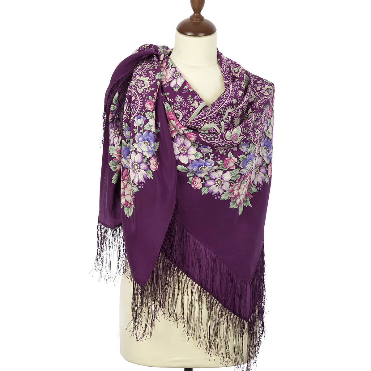 Шаль шёлковая (крепдешин, бахрома) 130х130