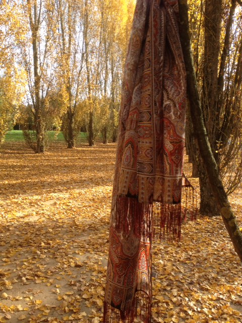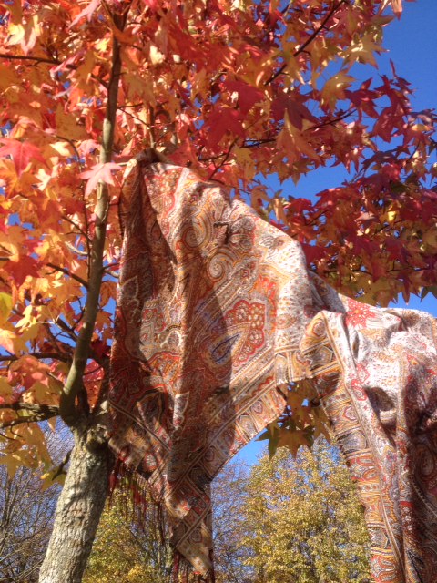 zolushka- темной осенью особенно радуют глаз такие яркие цветовые акценты- оранжевые тыквы, желтые хризантемы, палантин отлично подходит к осенней палитре )