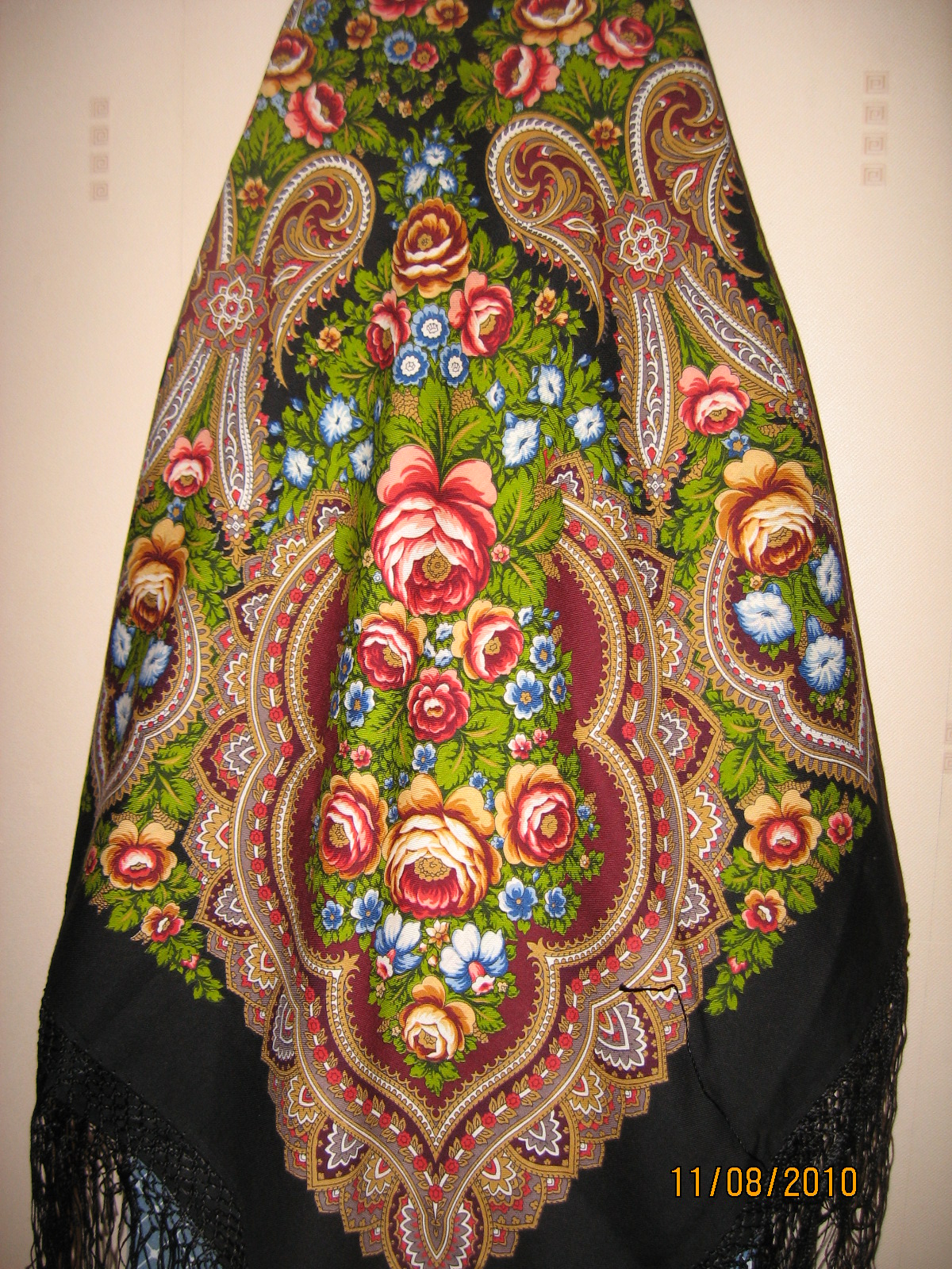 В архиве почему-то нет Лета в Павлове-18. Есть фрагмент и не удачный, на мой взгляд, вариант платка повязанный на голову. А вот шаль на плечиках или "квадратиком"