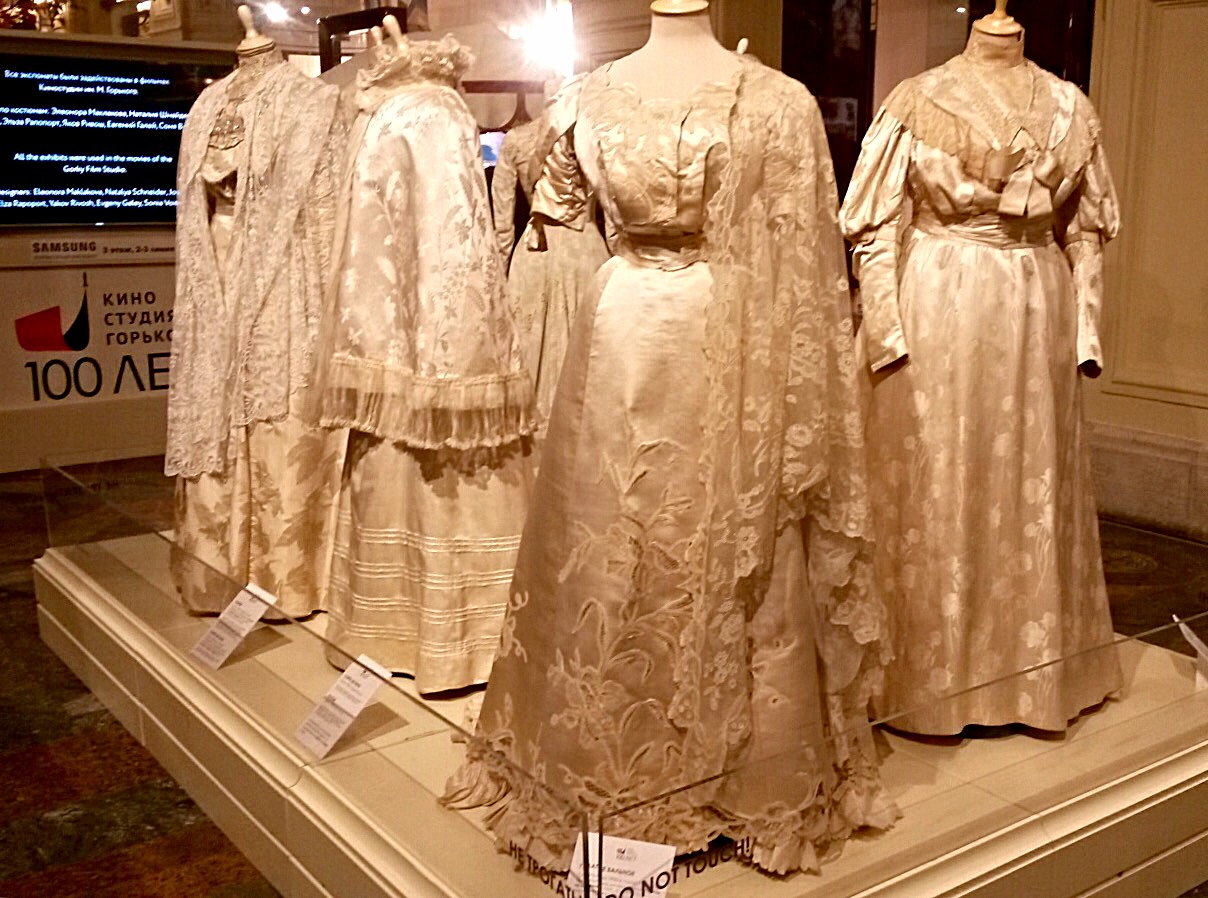 Стало открытием, что для съемок приобретают подлинные туалеты, большинство экспонатов - конца 19-начала 20 века, а то и более ранние, начала-середины 19 в. Всегда думала, что для фильмов костюмы шьют специально, по эскизам соответствующей эпохи.