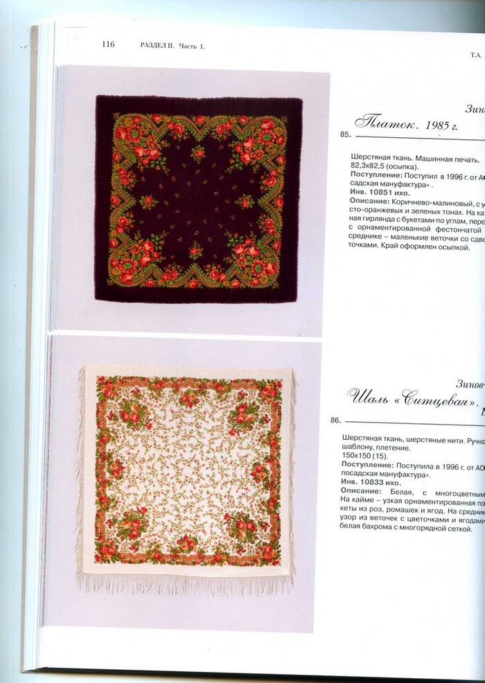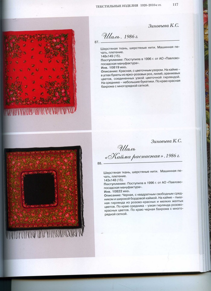 В связи с выходом книги "Павловопосадские платки и шали в собрании Сергиево-Посадского государственного историко-художественного музея-заповедника" (далее - каталог), атрибуция некоторых шалей, размещенных в этой теме, нуждается в уточнении.