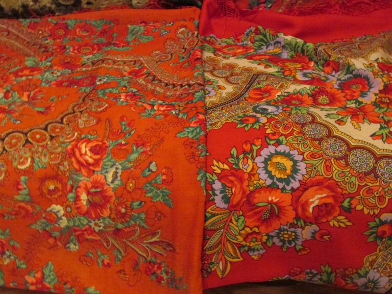 По просьбе Лены агента 007 и Милочки выкладываю сравнительные фото, четырех красных Подков. 2 шали новой печати, две очень старой. (Все шали Лены)