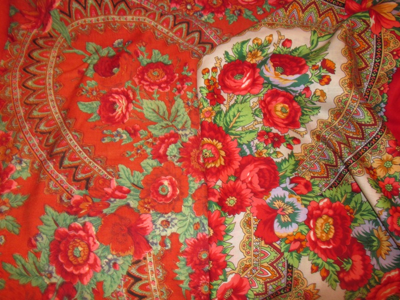 По просьбе Лены агента 007 и Милочки выкладываю сравнительные фото, четырех красных Подков. 2 шали новой печати, две очень старой. (Все шали Лены)