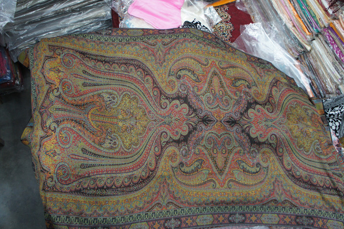 и на сладкое, магазин палантинов, пашмин и шелка за хозяном магазина полки, где стопками сложены шелка всех оттенков, тканные пашмины, на которые уходит по два месяца работы мастерицы