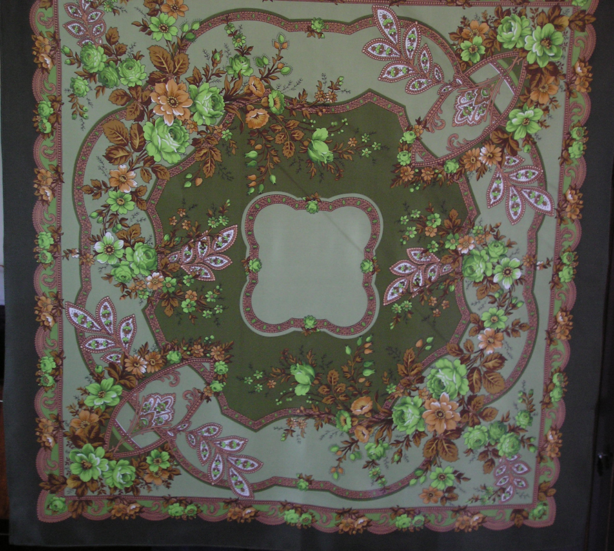 Как-то после таких шедевров даже неловко со своими зелёными розочками, но обещала yuly1104. Прошу прощение за заломы - платок без этикетки, активно носится.