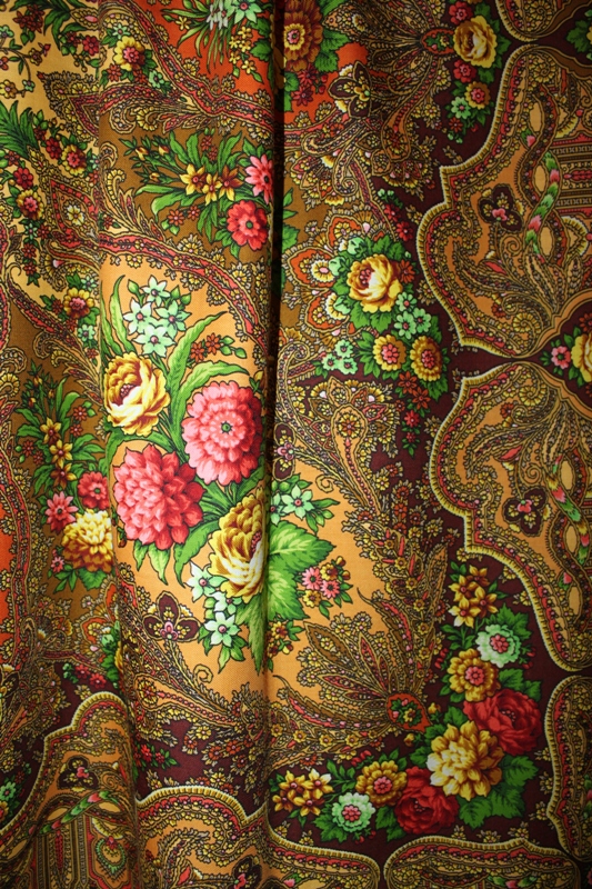 Larisa71, а я случайно увидела уголок в стопке шалей офигенно изюмрудного зеленого с рыжими цветами в лоскутном отделе П-Посадского магазина мануфактуры. И как она там оказалась 30 декабря 2015 года? Подозреваю деда Мороза. :) Да, она в 3-ем сорте, раненая, но отличной печати и на прекрасной ткани, настоящей уплотненке, уже любимая, из тех что никомуникогда. Починю и буду носить.