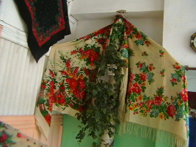 Нетипичный размер - 135х135 - вот что меня смущает. Или редкий. Вот тут viewtopic.php?f=3&t=221&start=375#p14857 Нитик показывала свою старую шаль, пишет что она примерно 130х130. А уж ее-то шаль, мне кажется, точно павловопосадская. И достоверно не современная. По фото кажется плотной. В книгах все больше шали крупноформатные. Но ведь с ними параллельно печатались и платки меньших размеров: все это как-то за кадром для нас. На фото с выставки я показала синий платок (ни автора, ни названия, ни года не указано): он совсем не похож на павловопосадский, но не могли же положить в витрину чужой плат, верно? Это я к тому, что непривычная прорисовка цветов и листьев - повод усомниться в парловопосадскости, но еще не аргумент.