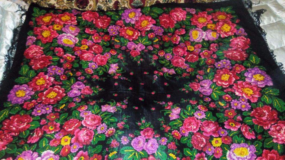 А вот такой не встречался? :oops: Шерстяной платок размером 115 на 115 см