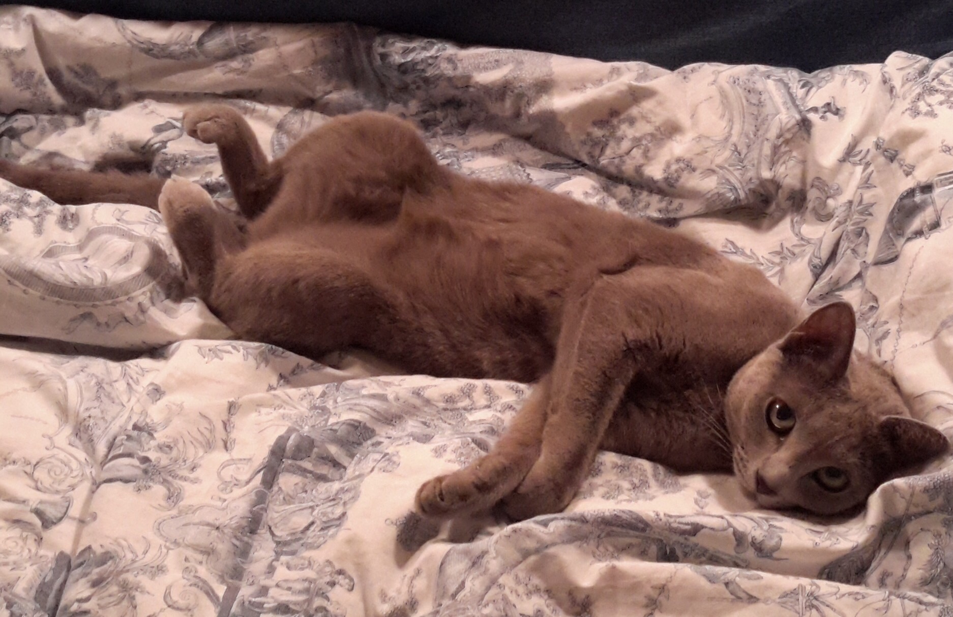 Полный котиный кайф, отлеживается, блаженствует на тепленьком. Похудела, видно по фото.