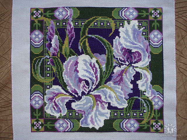 selenka62! Ваши дополнения к мышатам и новая кайма к ирисам на подушке - нечто необыкновенное! Оба дизайна сразу превратились из серийных в авторские работы. Завидую Вашему творческому чутью и вкусу завистью всех семи цветов радуги от красного до фиолетового, т.е. в сумме хорошей белой!Спасибо за ссылочки!selenka62 писал(а):Спасибо!!! Но!!! Гусеница на листе, паутина внизу с паучками и божьей коровкой - придуманы мною и тут же вышиты. Оригинал - "две мышки и ягодки" ( мне НАДО было, чтобы на картинке было 7 персонажей - вот и додумывала...).