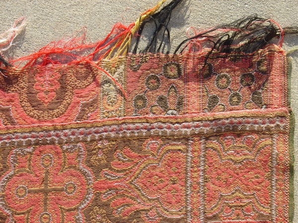 Совершенство совершенством, но иногда случались любопытные колористические протуберанцы. Нашла вот такую французскую шаль 1850 года. К цветам и сочетаниям оттенков в нарядах тогда относились довольно трепетно - и вдруг такая мундирная гамма. Занятно..EleMax писал(а):Цвета, оттенки, орнамент -- все плавно перетекает и дополняет друг друга
