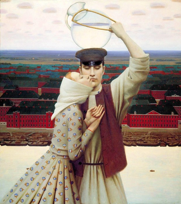 Однако, сколько художников “ищет связи между главными характерами и декоративными возможностями элементов одежды”. Красиво, глазу приятно, но какой контроль над разумом.. Отчего-то по контрасту вспомнился Малявин с его пастозными бабами и девками - вот где настоящий пожар и поэзия народного костюма