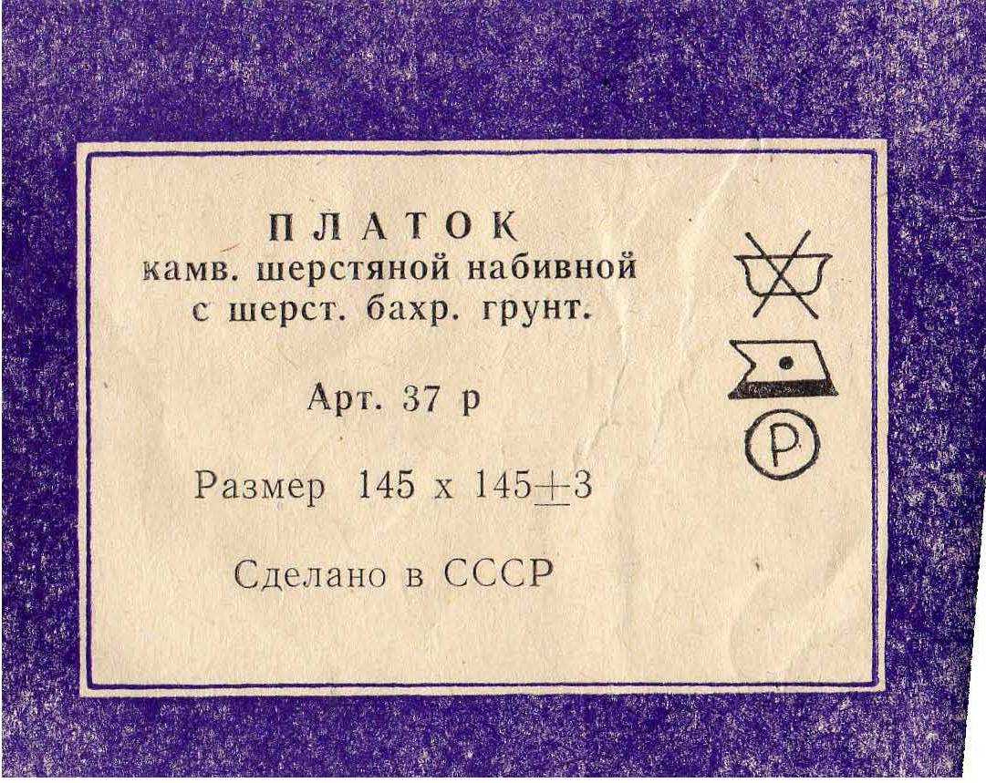 EleMax, т.е. суть вопроса не в том - пришита-непришита, а соответствует ли этикетка на Вашем платке установленным образцам этикеток ППМ, применявшимся в те годы... Акценты не уловила, сорри.EleMax писал(а): Вот как выглядела этикетка ПП в 1970-1980х. Как видите, большая разница (хоть артикулы и не сильно отличаются). Это во-первых. А во-вторых, как обычно-- хотелось бы изделие поименовать... Спасибо.