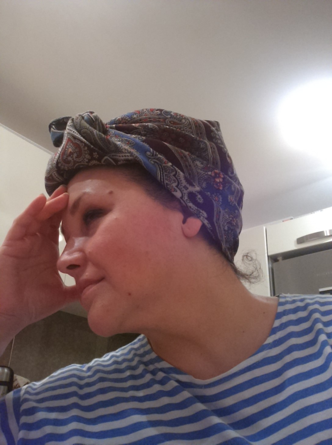 Покажу, как я ношу платки на голове, это практикую летом. В первую очередь очень удобно. Во вторую - если идёт, то и красиво ;) (мужу моему не нравится, а мне очень :D )