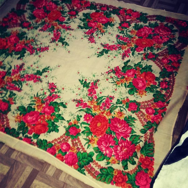 Татьяна-Золушка, я не могу быть на сто процентов уверенной, но мне кажется, что это польский платок. Польские платки, которые я часто вижу на западных аукционах, сделаны так же - по принципу красивой ткани (повторяющийся на определенном расстоянии цветочный паттерн), а не по принципу картины, как платки ППМ - нет рамки-каймы, рисунок не строится на 4 угольный, объединенным в единый ансамбль, а идет постоянным ритмом, постоянным повторением одного и того же паттерна по всей ширине грунта.