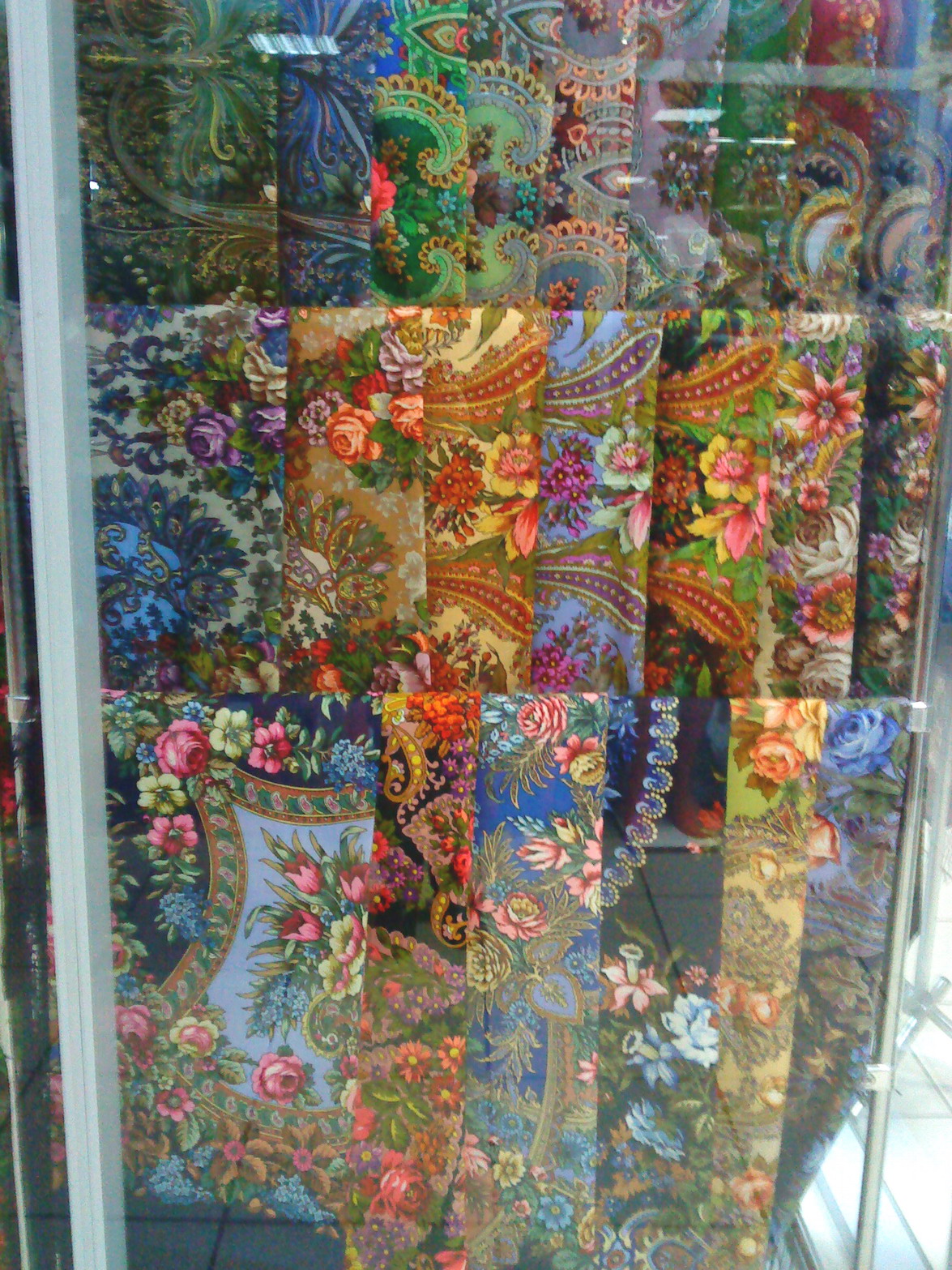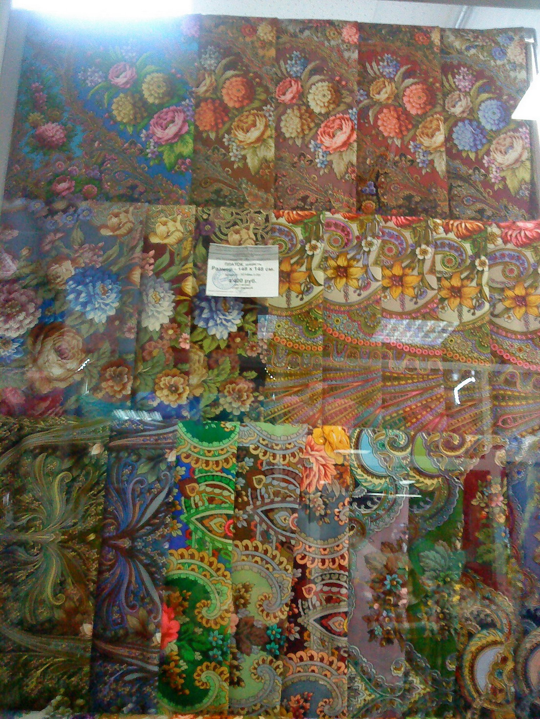 Начав поиски красных медальонов, сделала пробег по двум магазинам. Начала с Орехово. Как я писала ранее, магазинчик маленький и уютненький, но это не значит что выбор мал, просто все шали и платочки развешаны плотненько.