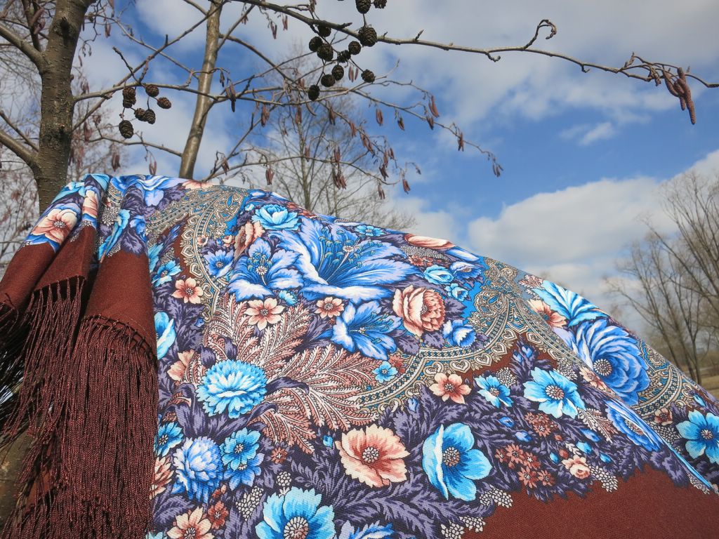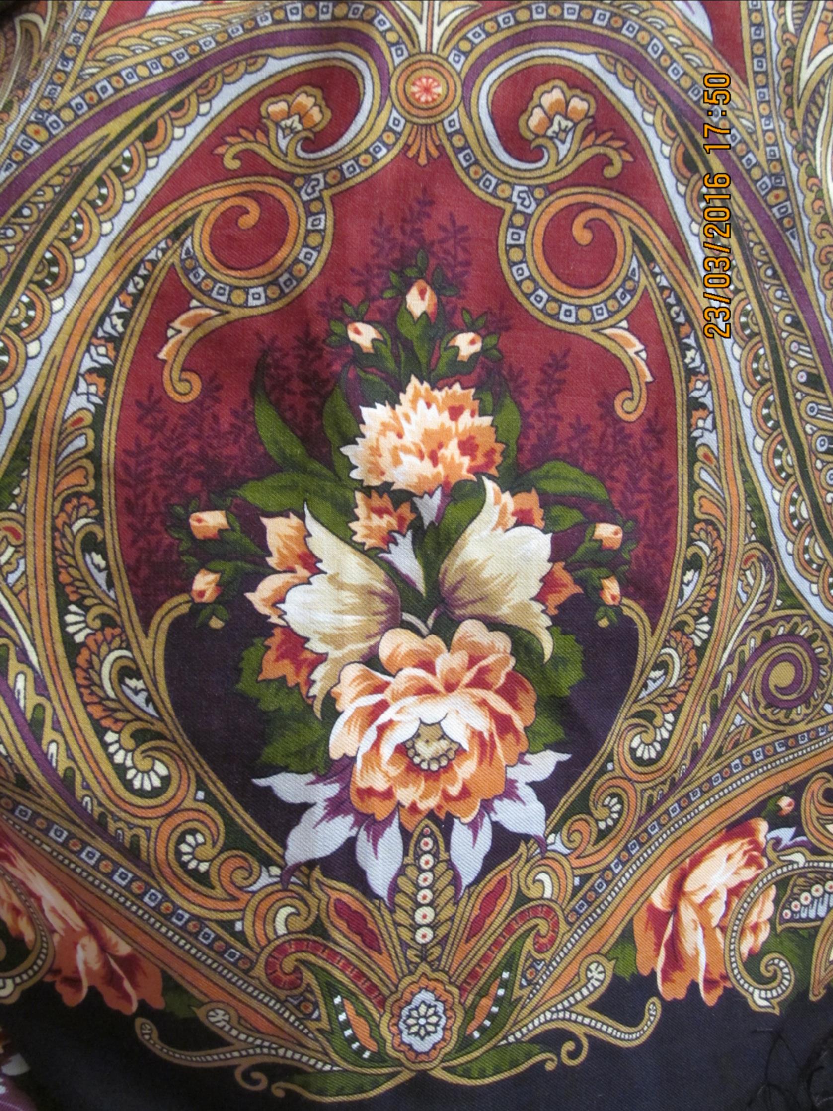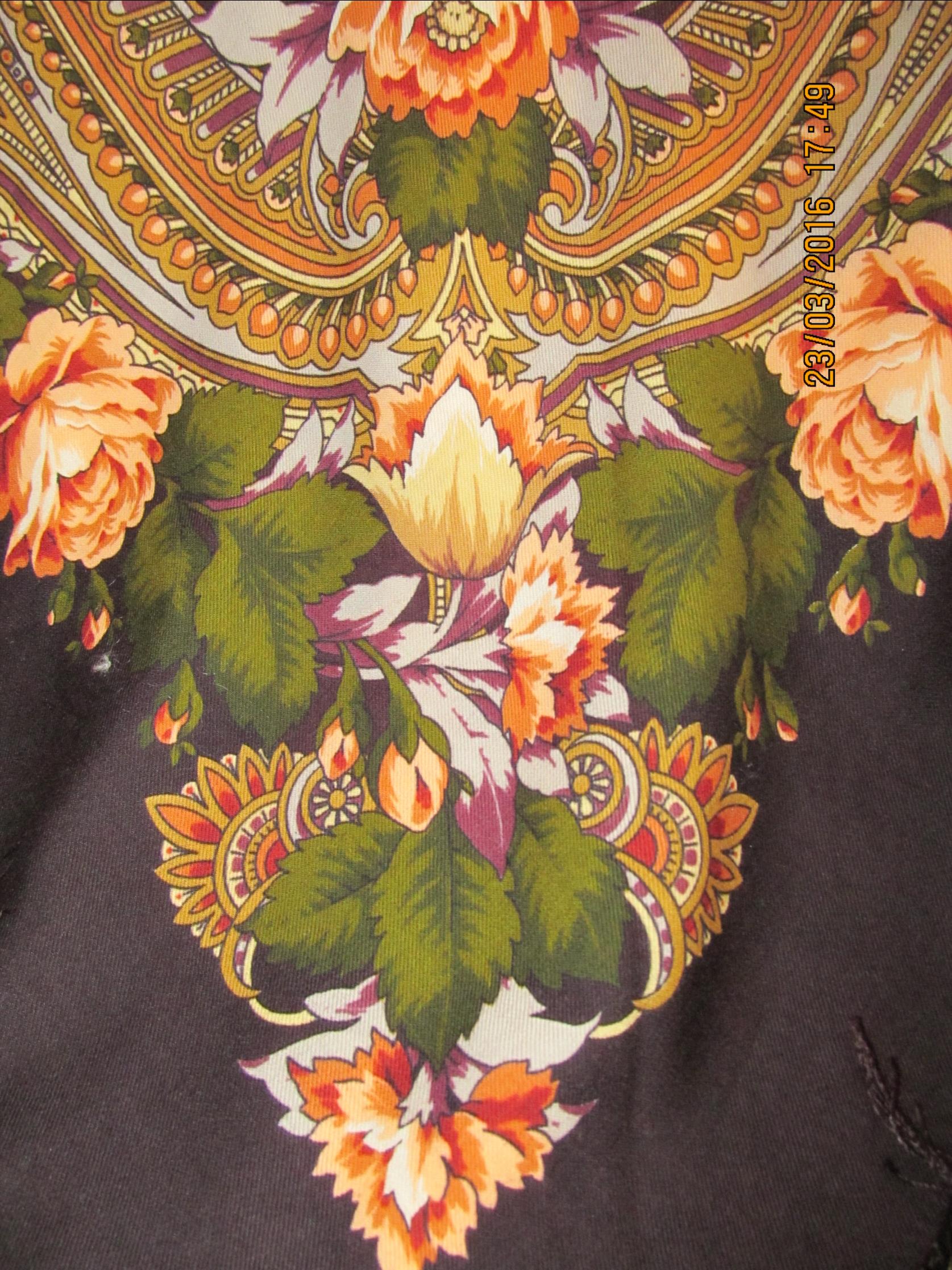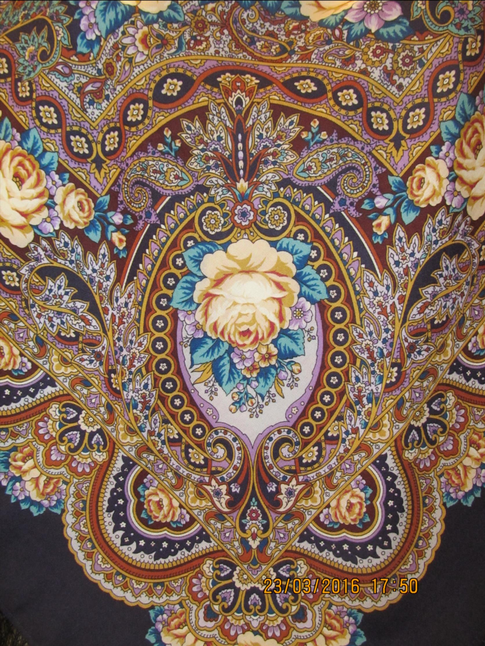 Я покупала Русское раздолье просто так, ещё не зная о подорожании. Он почти единственный из всех кто подошёл к темно синему утеплённому плащу. Пока не купила носила с синими Русскими сезонами, там тоже темно-синий фон. Искала платочек поменьше размером с подходящим фоном. Наверное надо показаться в Примерочной.