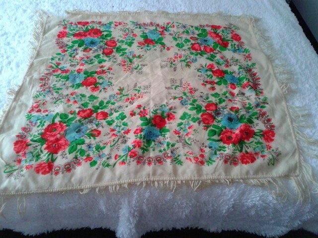 Добрый вечер! девушки, сегодня случайно попал ко мне старенький платочек. вид конечно у него пока не очень- неглаженый, сейчас буду стирать, гладить. Вроде видела в БС его и эти гвоздики)))! но сейчас ищу - не могу найти.