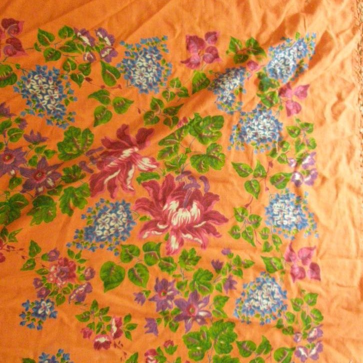 Печать на оранжевом грунте. Хлопок. Фрагмент