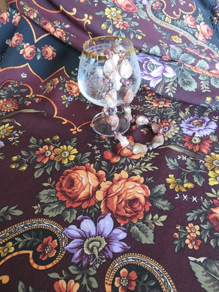 А я хочу показать вам новые бусы из яшмы мукаит, разноцветные и веселенькие, с платком "Русское раздолье", и с ним же ещё брошку в теме бижутерии.