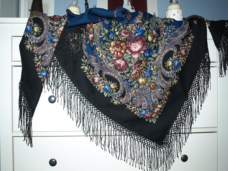 И потом, с укороченными кистями, мне гораздо больше нравится, как платок выглядит при драпировке - рисунок лучше виден!