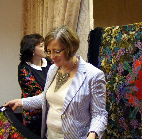 Это тоже Люсина шаль. Ирина Перовна сказала, что это Екатерина Регунова. Ручная печать по шаблону, о чем говорит, в частности, отсутствие контура.