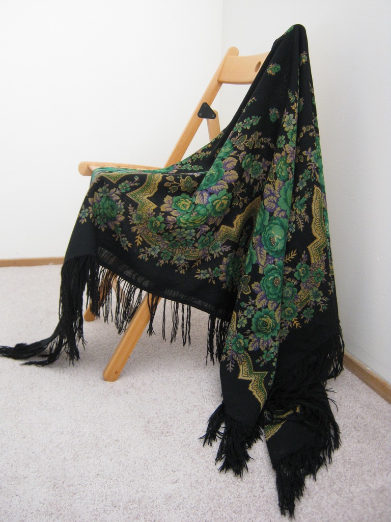 5 или 6 лет назад подарила мне подруга шаль павлопосадскую. Зачем, непонятно? Я не носила тогда ни платков, ни шалей. А если и покупала их, так только в подарок друзьям- инностранцам, как русский сувенир. При этом мне и голову не приходило не только носить их, даже примерять на себя. И вот 3 года назад пошла я с мужем праздновать Новогоднюю ночь в культурный центр города . Вечер в стиле а ля рюсь пройти был должен, ансамбль фольклорный из России пригласили. Решила я колорита русского к наряду добавить. Тут-то и вспомнила я про эту шаль, она мне как раз с синему бархатному платью подошла. Откуда я могла знать, что у павловопосадских шалей есть такая особенность: достаточно пару часов на себе поносить, как уже не расстанешься с ними никогда? С тех пор и покупаю, и покупаю, и ношу, и ношу. Ну дарю, конечно, тоже.