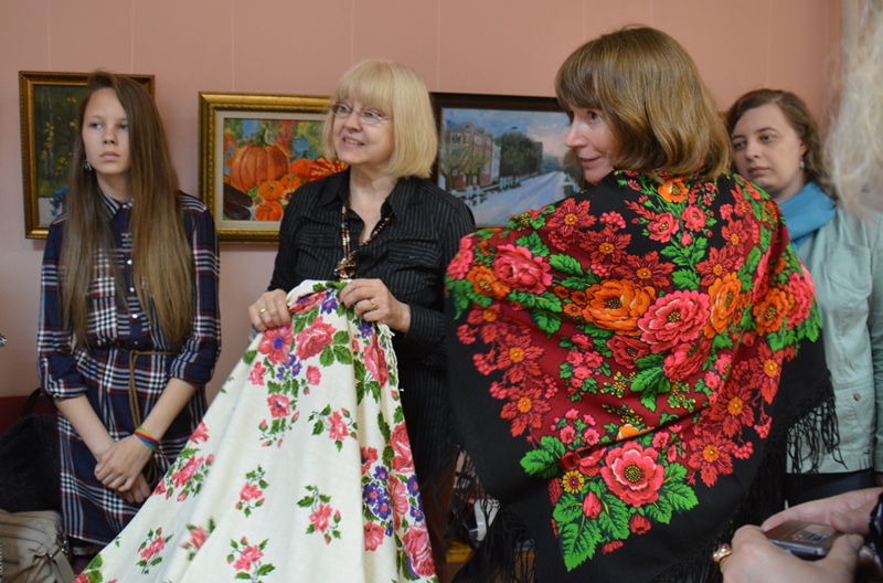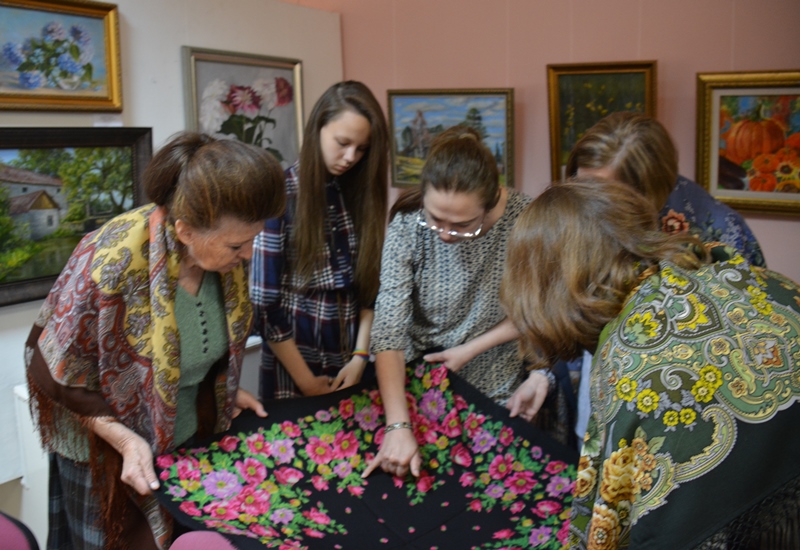Про хлопковые шали Ирина Петровна сказала, что они Городковские, а там работали Рыжов, Слащева и Зиновьева, поэтому об авторстве рисунков на хлопке она ничего сказать не может.
